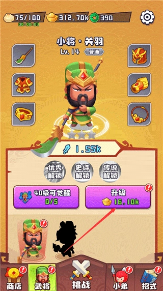 5、点击升级可以进行人物属性提示,从而获得战斗力;