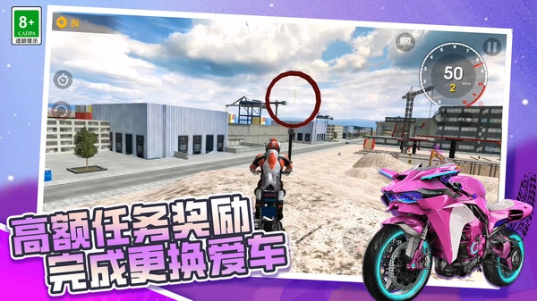 1、运用先进的物理引擎技术,高度复刻真实摩托的驾驶质感,尽享风驰电掣的速度激情。