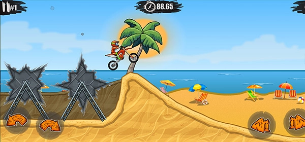 4、玩家需要利用好加速和控制车辆翘头的两个按钮,闯过重重障碍;