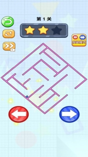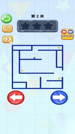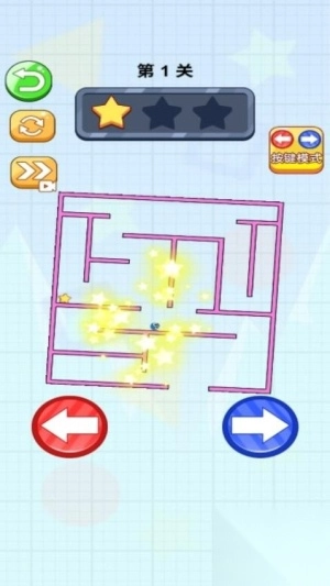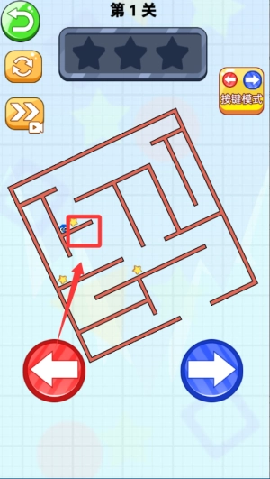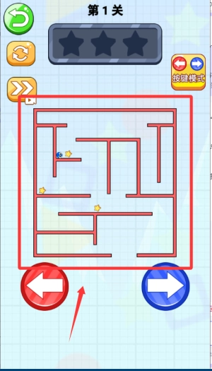 1、进入游戏后,先观察迷宫的整体布局,明确星星的分布情况与终点的具体位置。接着通过点击方向键操控小球移动,保持平稳的节奏,防止小球掉入陷阱。