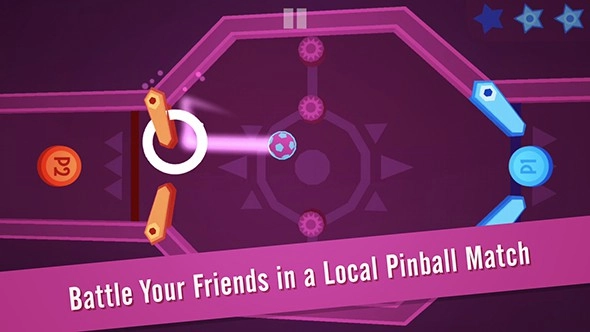 3、借助紫色光效轨迹预判弹珠运动,操控弹板精准弹射,避开齿轮障碍,让弹珠落入对方区域,获取星星积分。