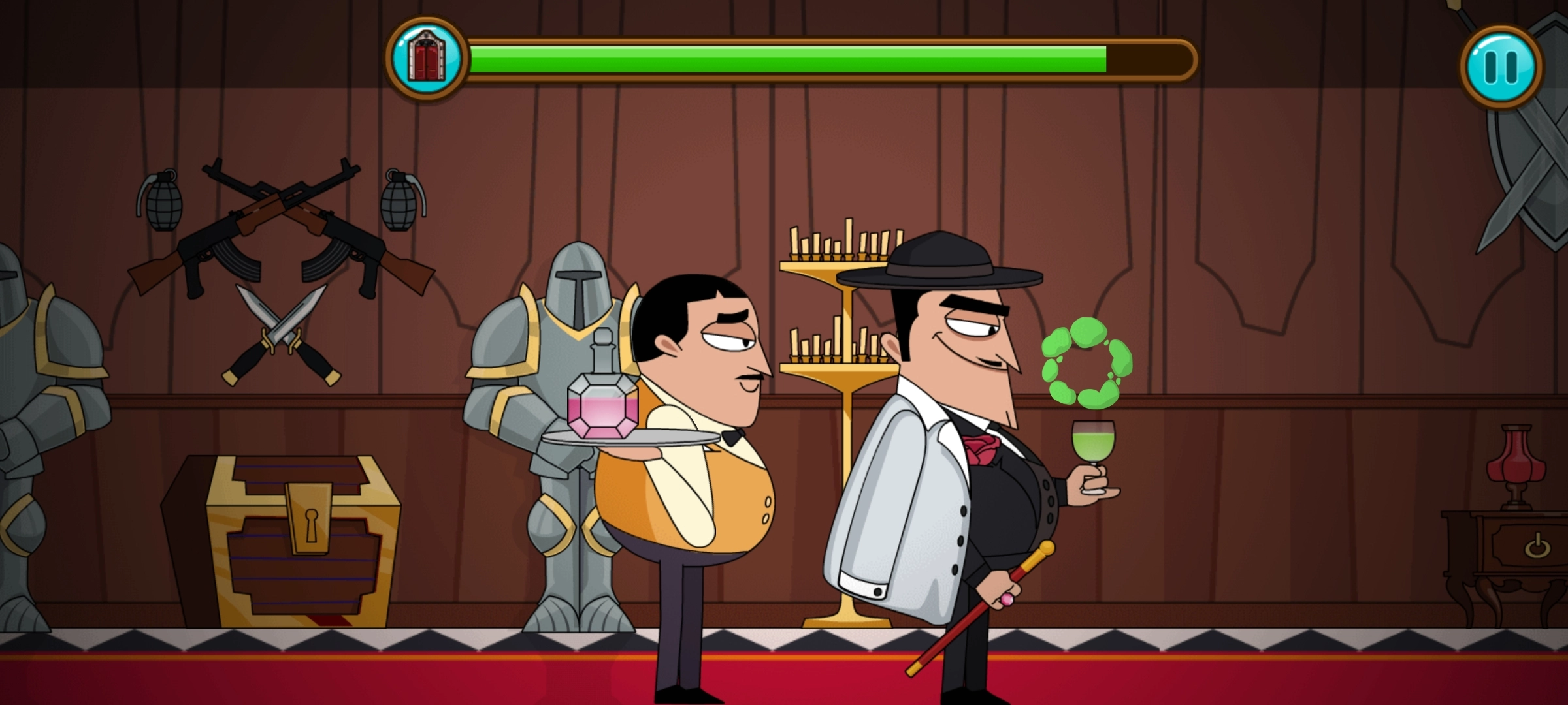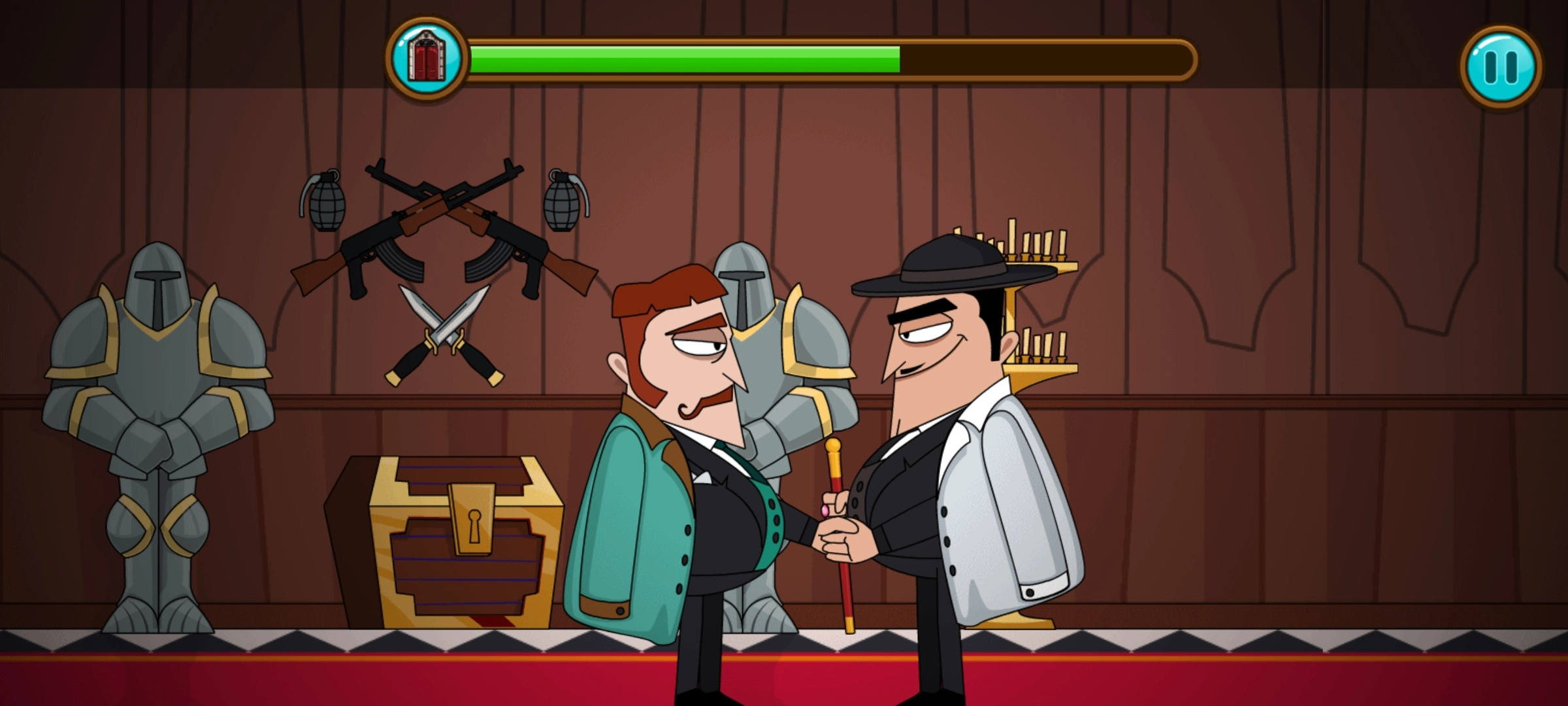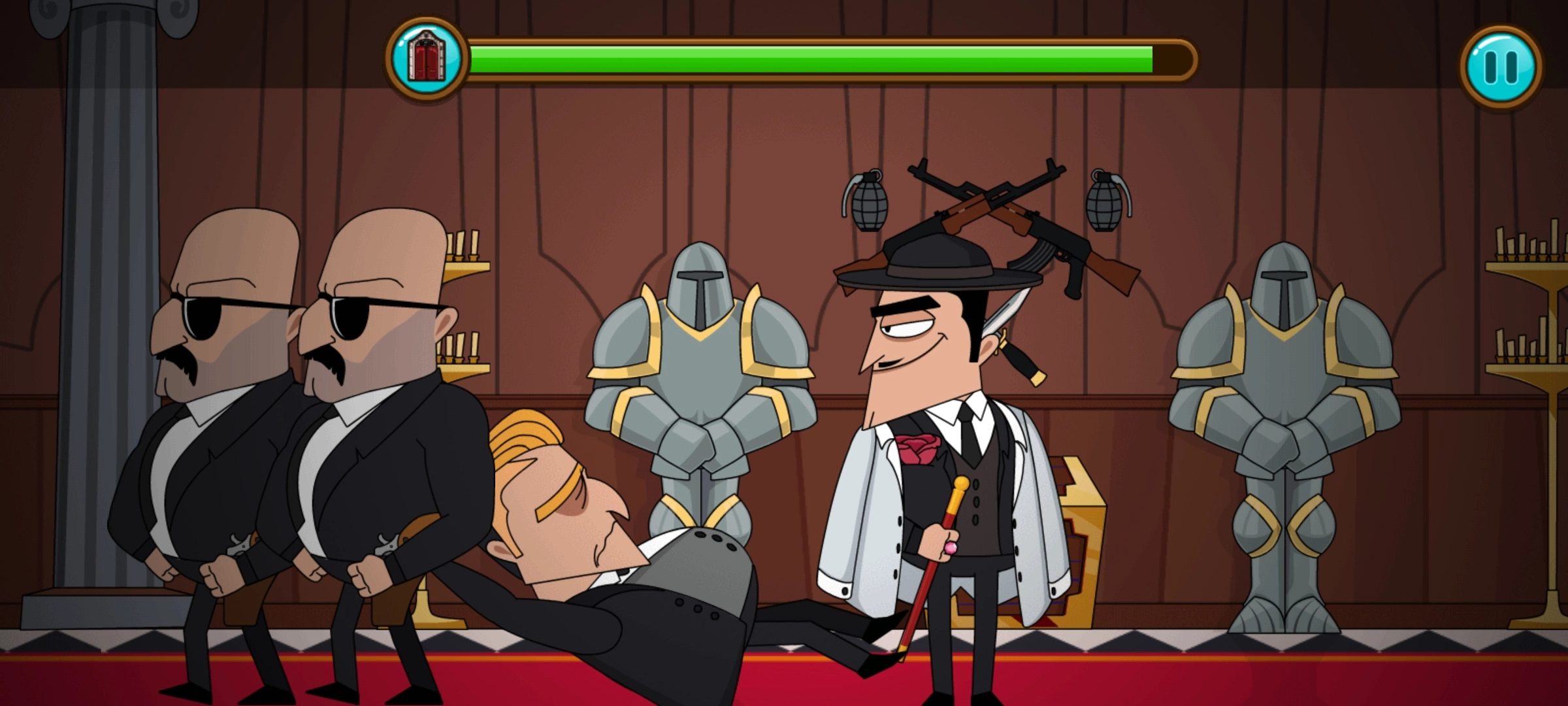 《刺杀黑老大》是一款轻松有趣的刺杀题材休闲游戏。玩家将以刺杀人员的身份开启游戏,与黑老大一同在横版赛道上向前行进。你需要找准时机,悄悄掏出刺刀完成刺杀,但黑老大可能会有所察觉,所以必须迅速反应,避免被发现。一旦刺杀成功,你就会成为新的黑老大,此时需要更加谨慎,直到走到道路的终点。喜欢这类游戏的玩家,不妨来试试吧!