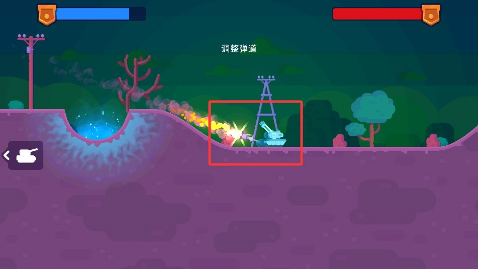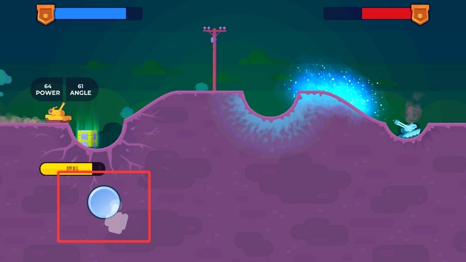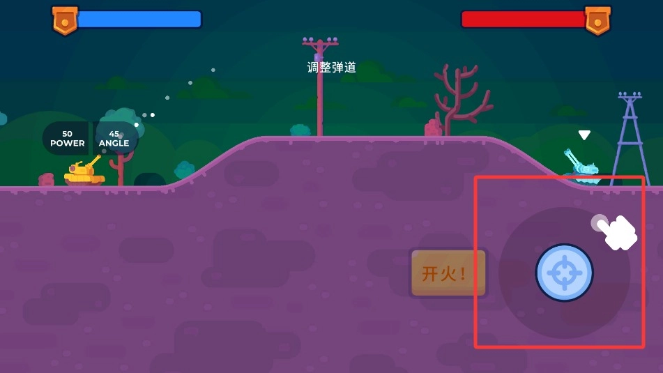 1、基础操作指引:左侧移动调整位置,右侧瞄准控制角度。点击发射按钮攻击,长按查看弹道轨迹。