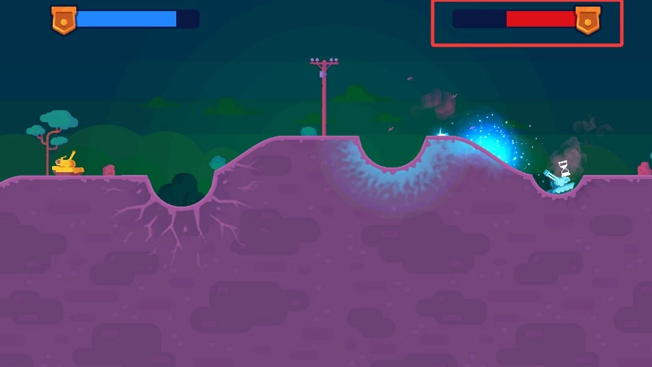 3、真实物理模拟:弹道受重力与风力影响,射击角度需精确计算。地形破坏系统让战场动态变化。