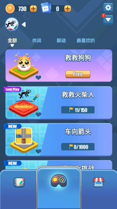 3、玩家能够把自己最钟爱的挑战收藏起来,在主页就能直接看到,点击就能查看里面具体更新的关卡。