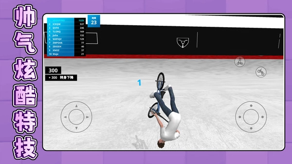2.使用左侧虚拟摇杆控制角色移动方向,搭配技能按钮完成各种帅气炫酷的极限特技动作。