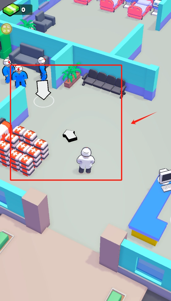 1、点击左侧红框白衣人员查看患者信息,右侧电脑可管理医院事务和医疗物资。