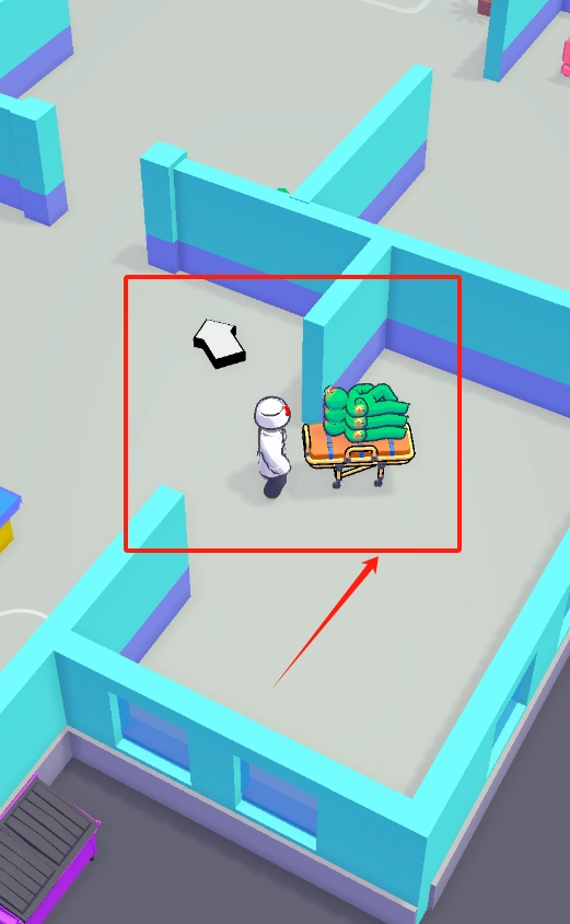 第3张图操作:点击推车上的绿色物体为患者治疗,地上黑白衣服需整理归位。