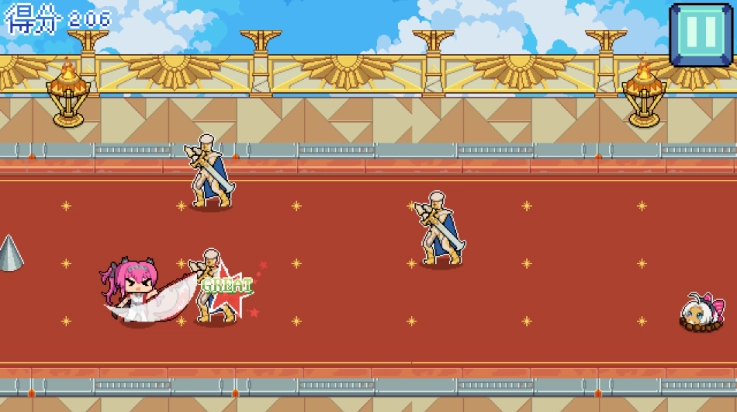 2、在行进的路上会遇到各种角色的像素小人,把它们击败后还能得到额外的道具。