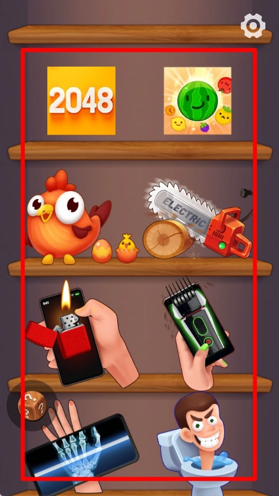 1.游戏主界面提供2048、开心水果合成、趣味剃须刀、电锯伐木等多款小游戏,每种都带给玩家不同的轻松体验。