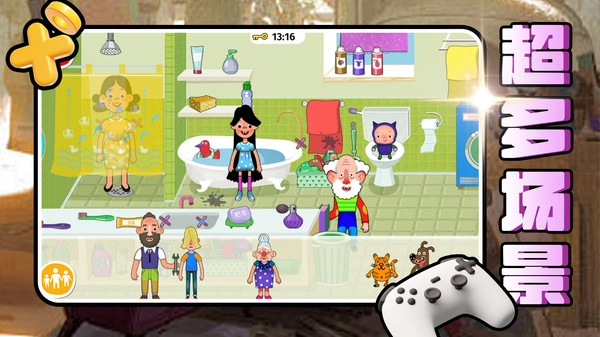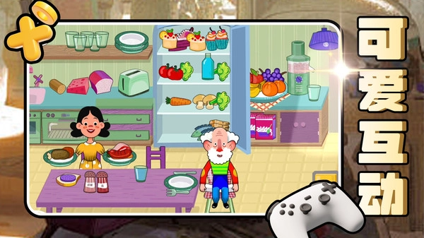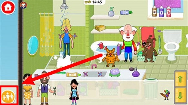 3.通过左下角的家庭图标,可快速管理角色,拖动人物互动完成过家家的趣味玩法。