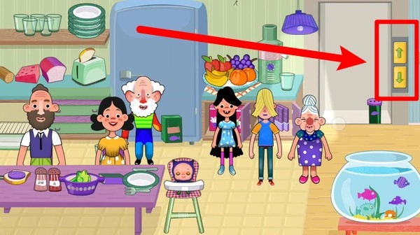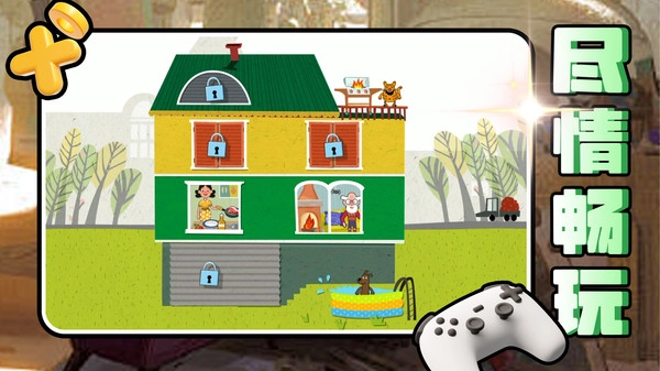 2.使用电梯按钮自由切换不同楼层,探索更多房间,感受丰富有趣的家庭互动和物品摆放。