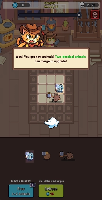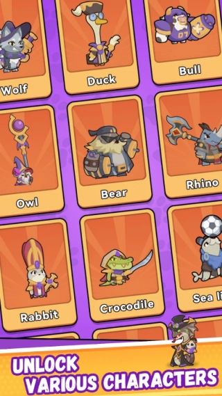 1、玩家通过混合搭配不同动物角色,解锁全新版本并组合出英雄生物,每个角色都具备独特技能与“小怪癖”,以此增添策略层面的趣味性。