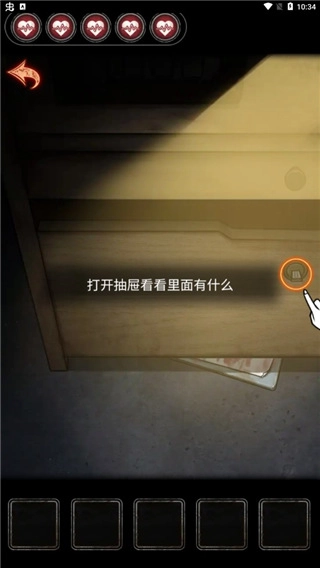4、拉开抽屉瞧瞧里面有啥,一截钥匙断在里头,钥匙柄却没了踪影,得找个工具把这个抽屉打开才行,去搜寻能打开抽屉的道具吧;