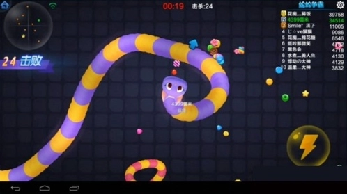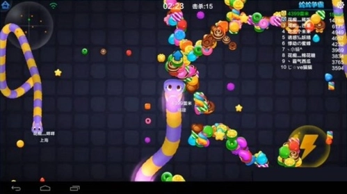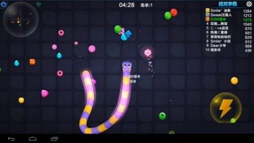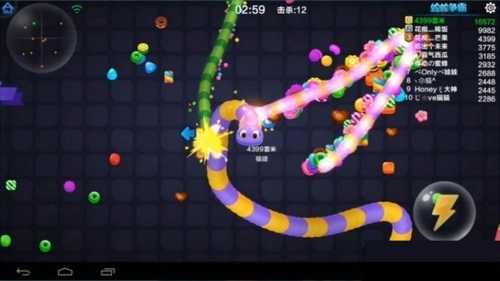 游戏开始的头一分钟里,蛇蛇们体型都很小,这时候击杀对手拿到的分数不多,而且加速还得消耗分数,加上自身长度有限,根本没法对敌人造成实质性威胁。虽然可以试着去击杀,但关键还是要先发育——吃掉那些亮晶晶的冰激淋块,能让你快速变大!