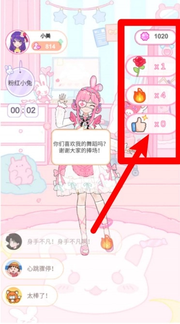 在舞台表演或者直播互动场景里,玩家能够收到观众赠送的各类礼物,像玫瑰、火焰、点赞等都包含在内,并且不同的礼物对应提升的人气值和表现力也有所不同。