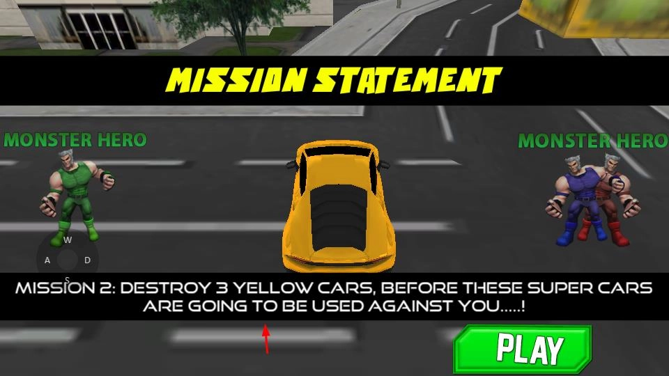 1、在任务界面点击绿色PLAY按钮,开启摧毁3辆黄色汽车的任务。