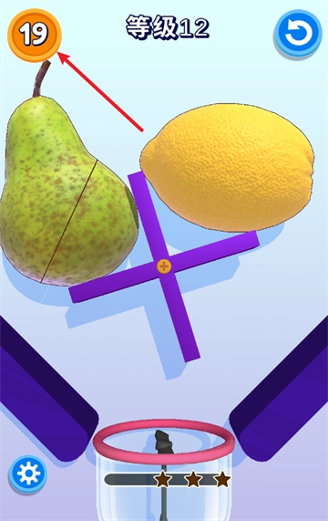 1、进入游戏后,你可以在左上角的位置看到自己每一关能够切水果的次数。