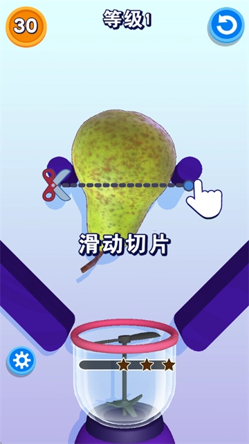 2、滑动手指精准切割各类水果,使其完美落入搅拌机内。操作简单却乐趣十足,每一次切割都能带来清脆的满足感。