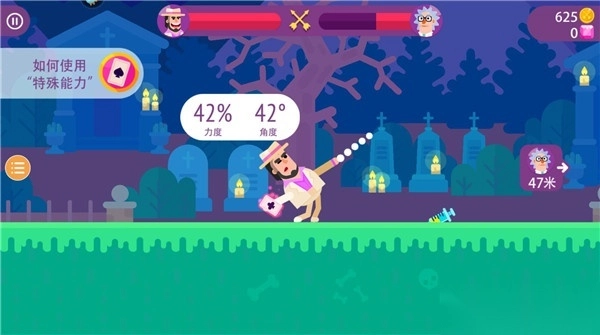 2、游戏中需要攻击其他角色。能够查看角色的血量变化情况,也可以查看射箭的距离,还能运用特殊能力对对方发起攻击