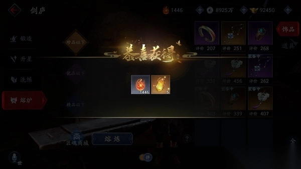 通过对无用饰品、道具和材料的熔炼,玩家可以获得匠魂货币。