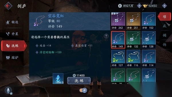 洗练系统可以让玩家消耗材料来对饰品装备词条进行调整,每件装备仅能对一个词条属性进行洗练,洗练属性会出现三种不同种类的选择。