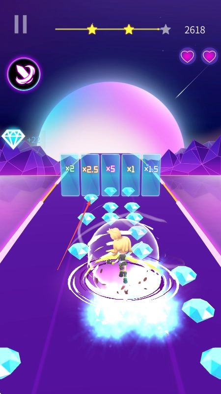 3、看到跑道上的钻石和倍数加成道具时在不影响击打音符方块和躲避障碍前提下尽量收集增加收益。