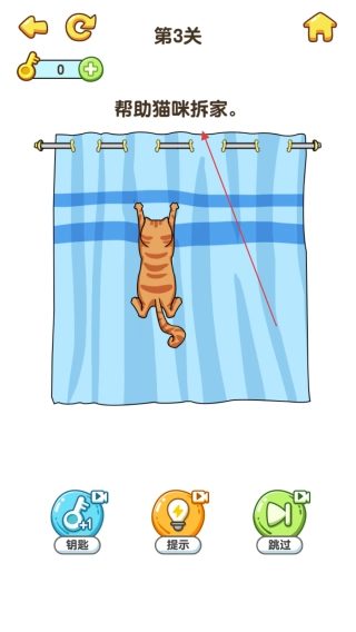 1、进入游戏关卡如第3关,阅读屏幕上方帮助猫咪拆家的任务提示。