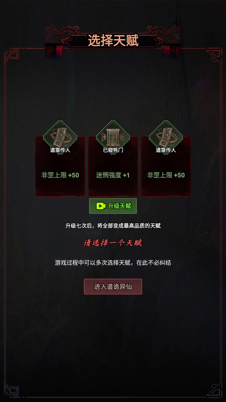 2、选择适合自己的天赋,完成初始设定后,正式进入道诡异仙的世界。