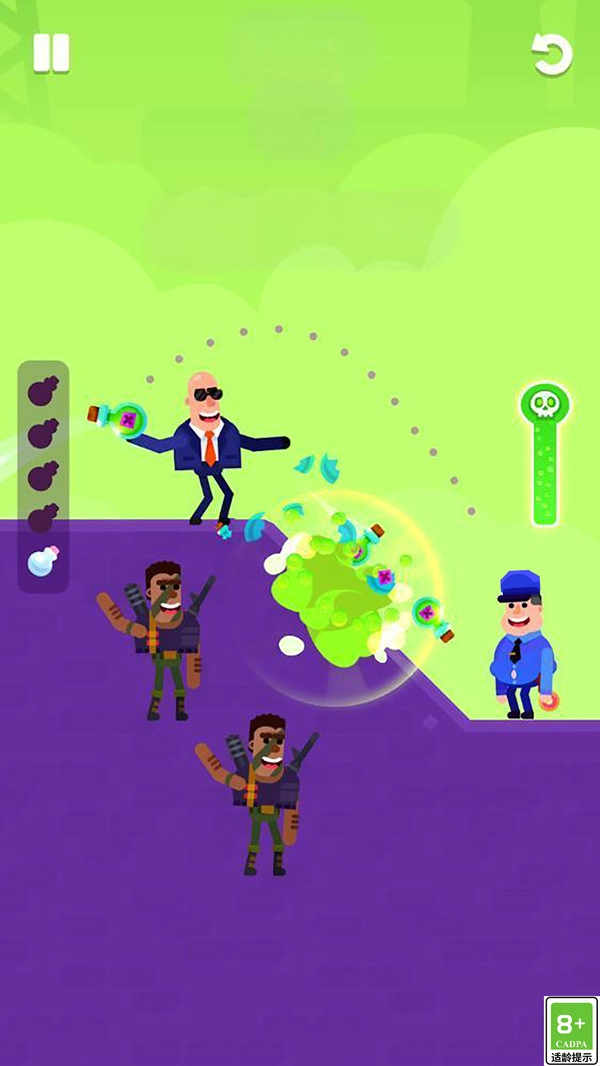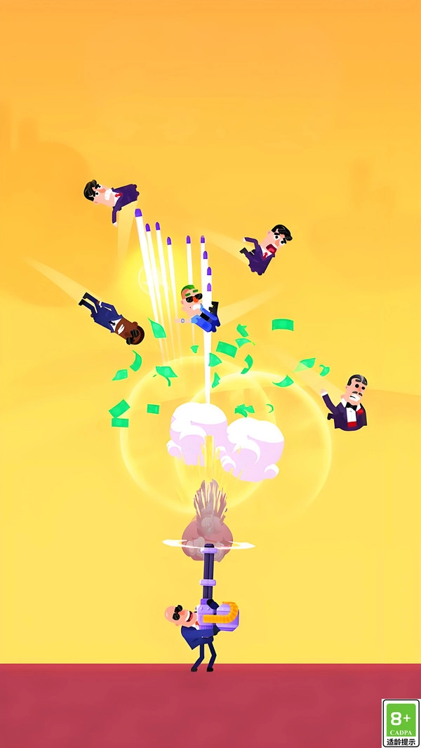 《我开炮贼6》是你指尖上的特工风暴!在这款融合精准射击与场景破坏的潜行动作游戏里,你将化身独闯龙潭的暗杀专家,借助飞刀投掷与陷阱联动完成华丽清场。独创的抛物线物理系统让每一次出手都满是策略性,爆破物与场景机关的化学反应更能带来连锁破坏的极致爽感。三秒就能上手的操作模式搭配电影级击杀特效,让你在指间微操中尽享特工反杀的颅内高潮!