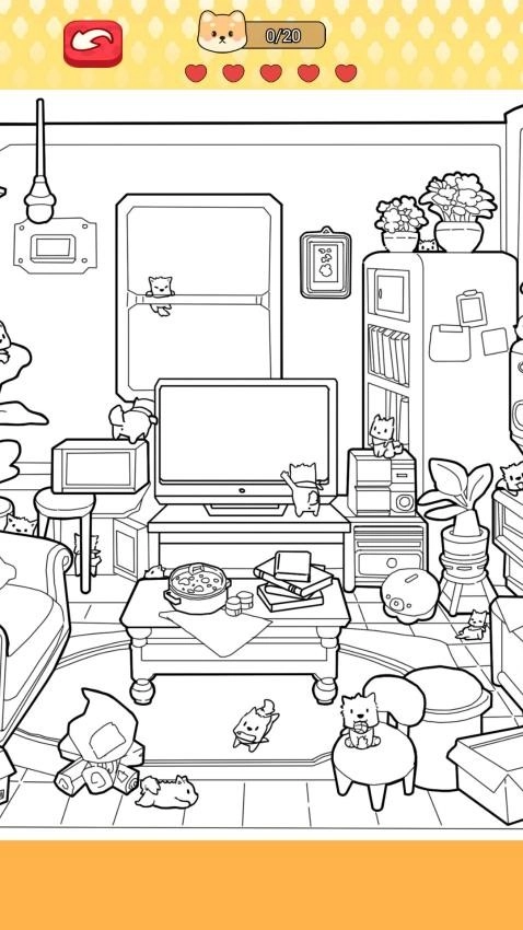 在《爆梗找茬大师》里,来一场考验眼力与速度的暖心挑战吧!你需要在规定时间内,找出藏在这间卡通小屋各处的胆小狗狗们——它们或许躲在窗帘后面,又或者藏在玩具堆里,一定要睁大眼睛,别错过任何细节哦!