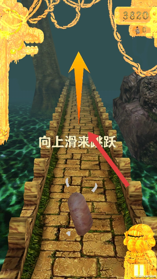 2、特殊动作应对:遇到低矮障碍或陷阱时上划屏幕触发跳跃,面对树洞等狭窄空间时下划屏幕执行滑铲,通过灵活切换动作应对不同场景的危险。