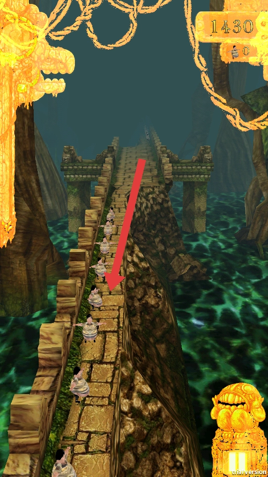1、在古桥跑酷场景中,需根据路径变化及时响应操作提示——遇到弯道时,按提示滑动转弯,通常左右滑动屏幕。