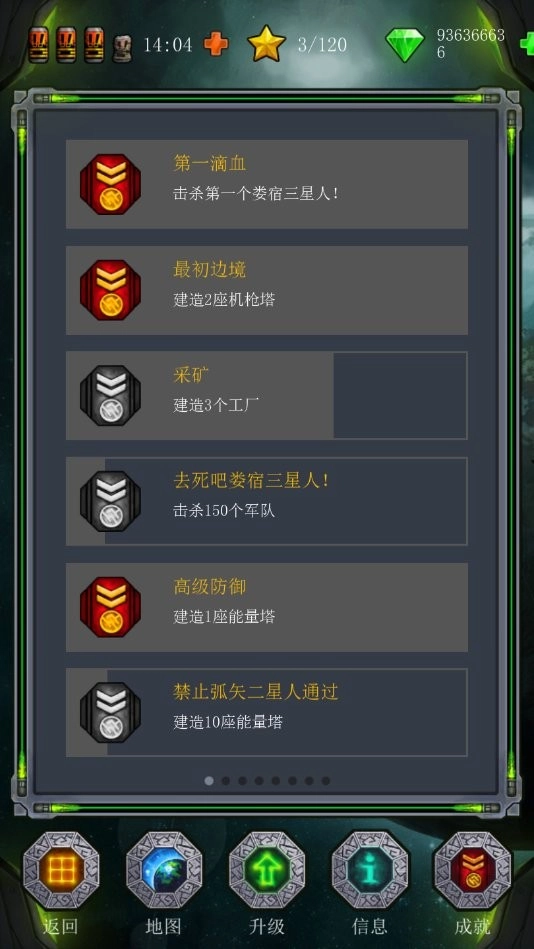 3、消灭敌人可获取金币,积累金币后可解锁或升级更强的防御塔,提升防御能力,同时留意成就解锁提示。
