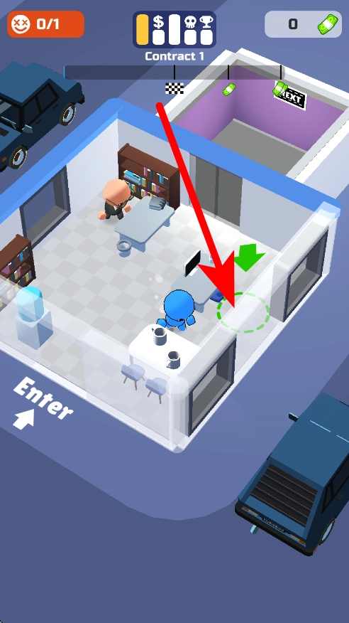 1、首先移动探索,操控角色在场景中移动,探索不同的区域,寻找可进入的建筑或目标地点,为后续行动做准备。