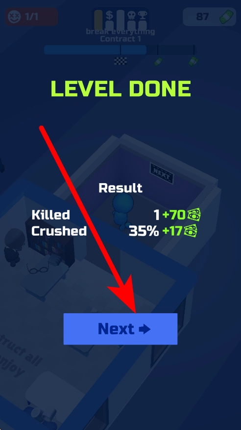 4、最后是推进关卡环节,在顺利完成当前关卡的任务后,点击Next按钮,就能进入下一个关卡,继续开启新的冒险挑战,体验更多不同的关卡内容。