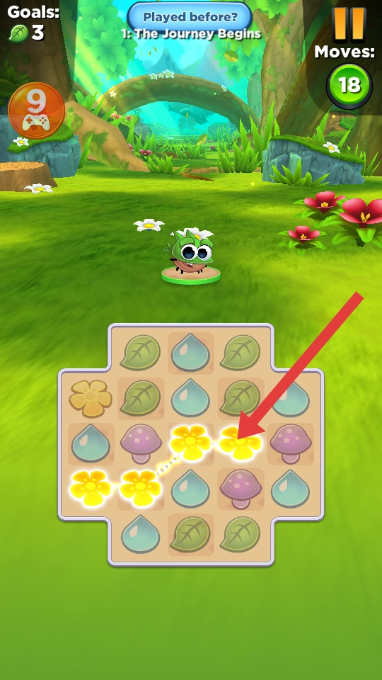 2、根据关卡顶部的任务目标,合成3个草生成1朵向日葵,规划合并优先级,优先合并与任务目标直接相关的元素。