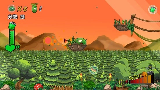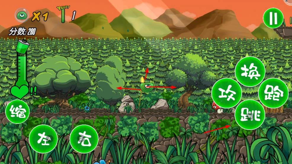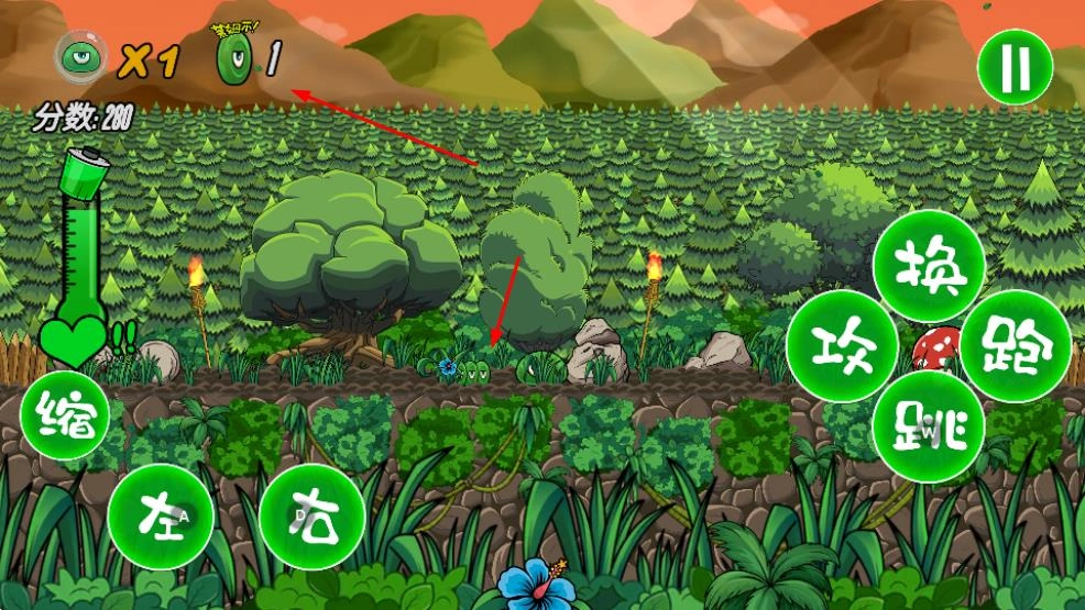 2、方向与动作的协同操控:左手通过操作左侧方向键来调整史莱姆的移动方向,保证它能够精准抵达目标地点;右手则依据场景的实际需求,点击右侧的功能按钮,以此触发攀爬、跳跃或者射击等相应动作。
