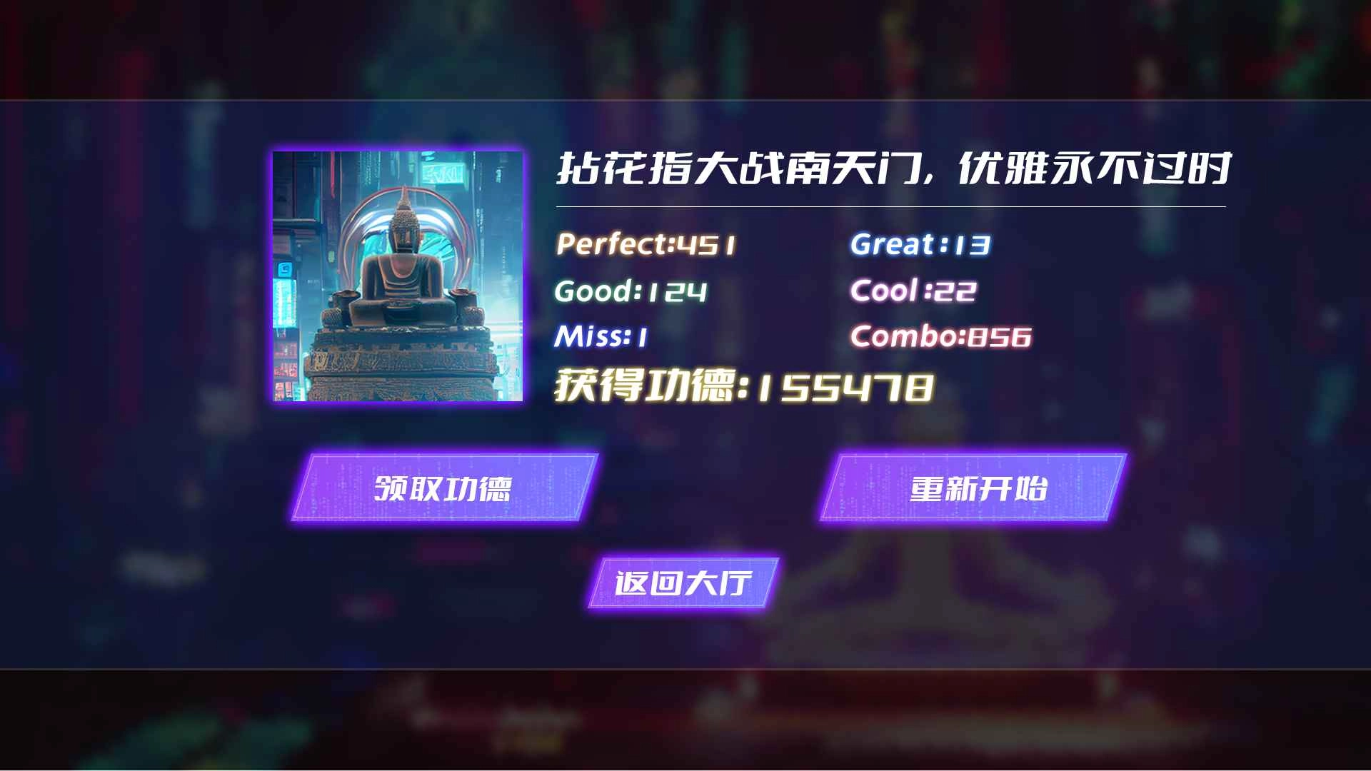 《节奏木鱼》的核心玩法是让玩家跟着音乐的节拍精准敲击木鱼,实现与旋律的无缝契合。该游戏操作简便、易于入门,不过若想斩获高分,就得持续练习并增强自身的节奏感。游戏内设置了多种关卡与难度,玩家能够依据个人的偏好和能力来挑选。