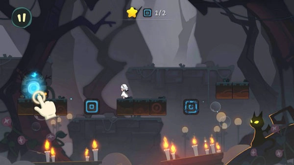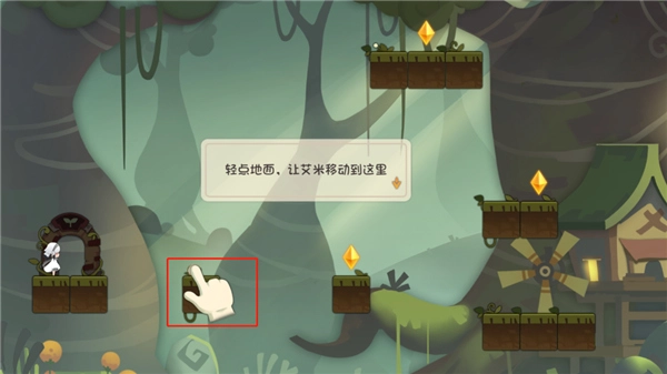 1、第一关:首先把左边的符文移动到中间位置,帮助艾米跳上带有气泡的符文,之后再将符文恢复原位,以便继续向前推进。