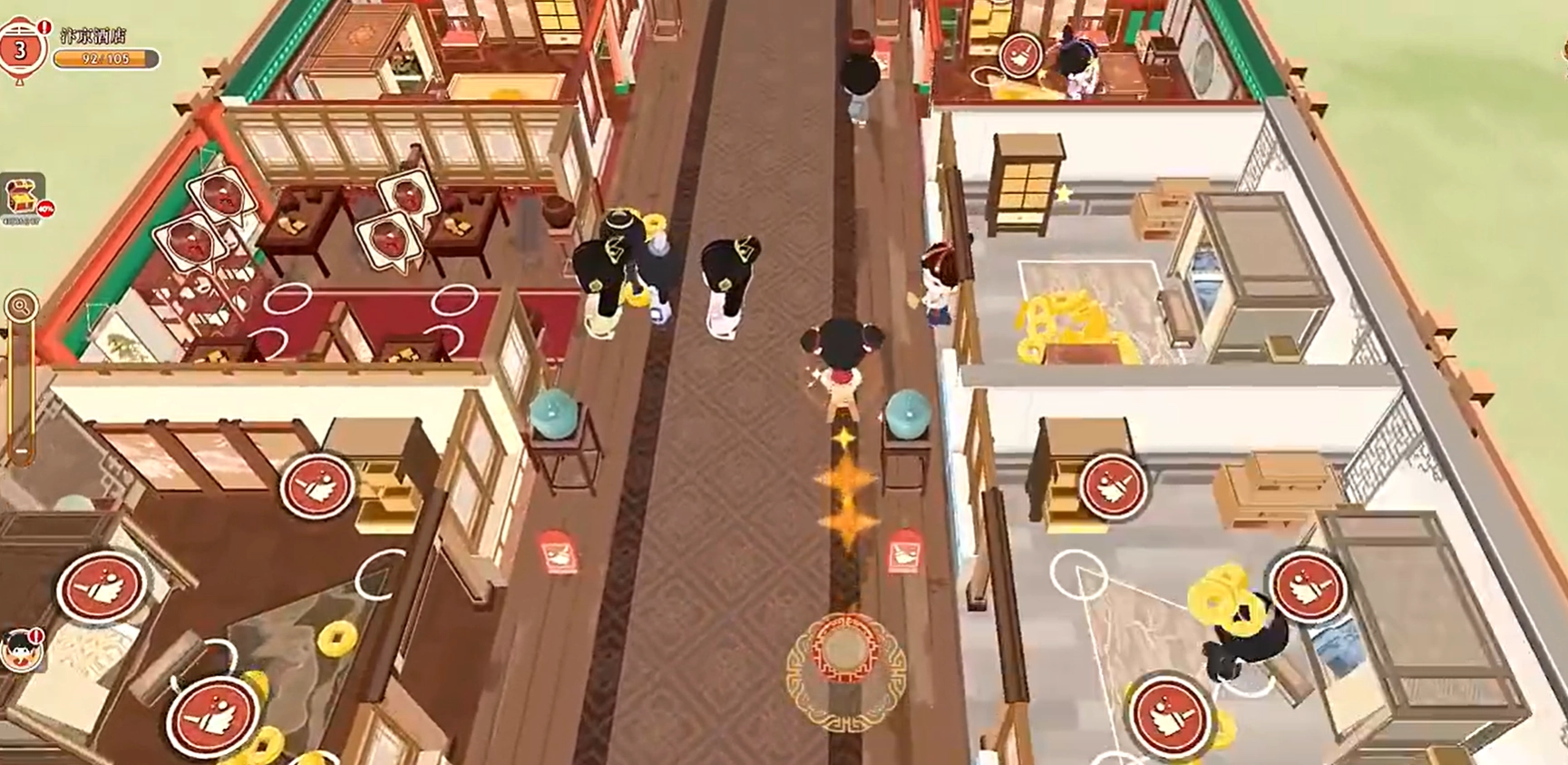 3、任务围绕酒店区域开展,待逐步建设完成后,即可解锁下一家新店。