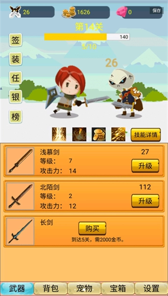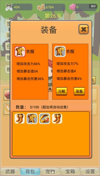 挂机勇者大冒险安卓版采用竖屏放置的玩法,让玩家参与到这场精彩的放置挑战之中。在游戏里,玩家将化身为一名勇者,操控武器向不同副本发起挑战,在此过程中会遇到众多怪物,感兴趣的朋友可以来体验一下。