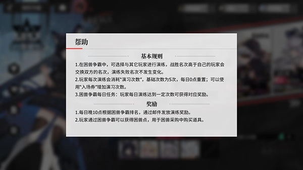 7、点击左上角的【帮助按钮】,可以查看关于困兽争霸玩法的详细说明。
