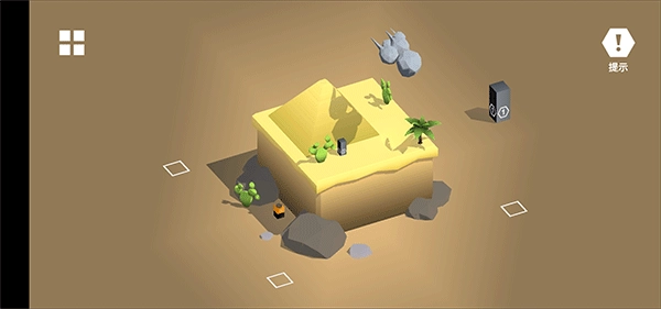 游戏里没有新手引导,需要直接上手操作,只要把三个柱子放大后放进对应的三个空格就能完成任务。