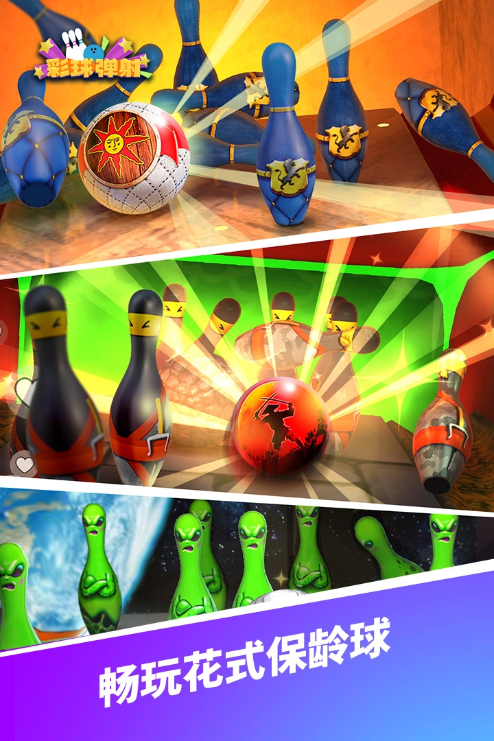 2、增强保龄球的“旋转效能”“力度”“轨迹”等属性,升级并解锁个性化装备,从酷炫球袋到定制手套,塑造专属的保龄巨星。