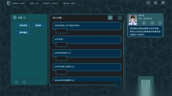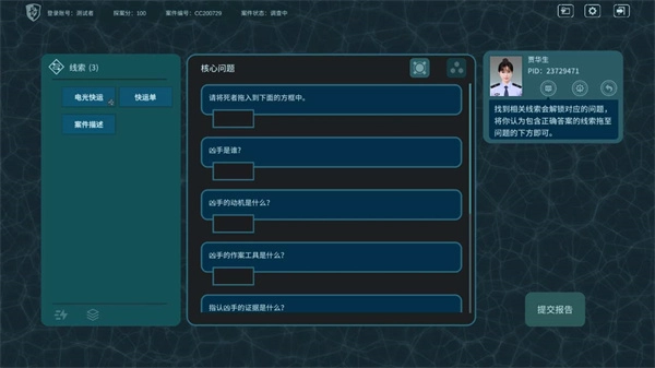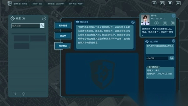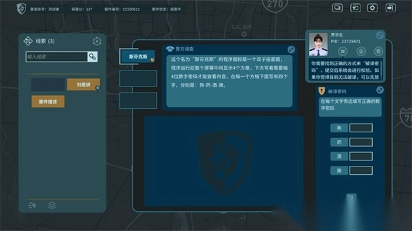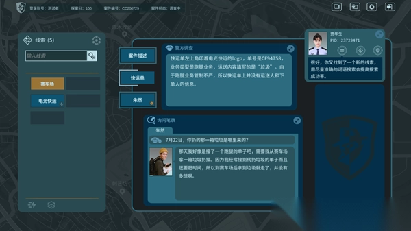 2、案件的过程与真实的警方破案相似,玩家需要手动提取关键信息,并在线索栏对信息进行检索;