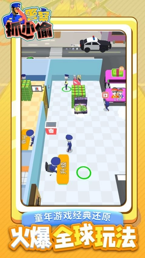 《警察抓小偷》属于模拟类型的休闲游戏,玩家在游戏里将化身为一位勇敢且秉持正义的警长,负责捉拿小偷和各类罪犯,并且对他们进行看押,直至这些人彻底改正错误、回归正途。