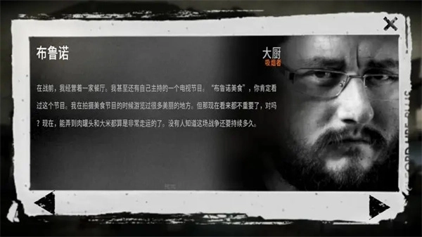 这位主厨确实相当实用,特别是在降低消耗这一块,从游戏前期到后期都是公寓里的顶梁柱。虽说这位胖乎乎的角色只能携带10格物品(白长这么胖了),不过让他在家值夜班也足够了,他的技能数量在当前版本的游戏里算得上是最多的。尽管介绍中称布鲁诺是个冷血的人,但从他的个人心情日记能看出来,他只是把自己的情感藏了起来,属于典型的“刀子嘴豆腐心”类型。