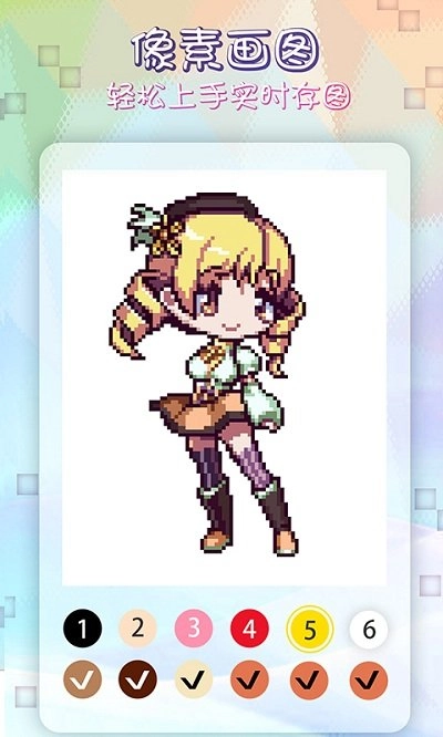 ★简易涂色:按照作品挑选自己心仪的颜色,点击空白区域就能完成上色。