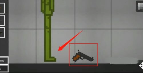 1、进入甜瓜游乐场游戏界面,将武器拖动到角色下方。
